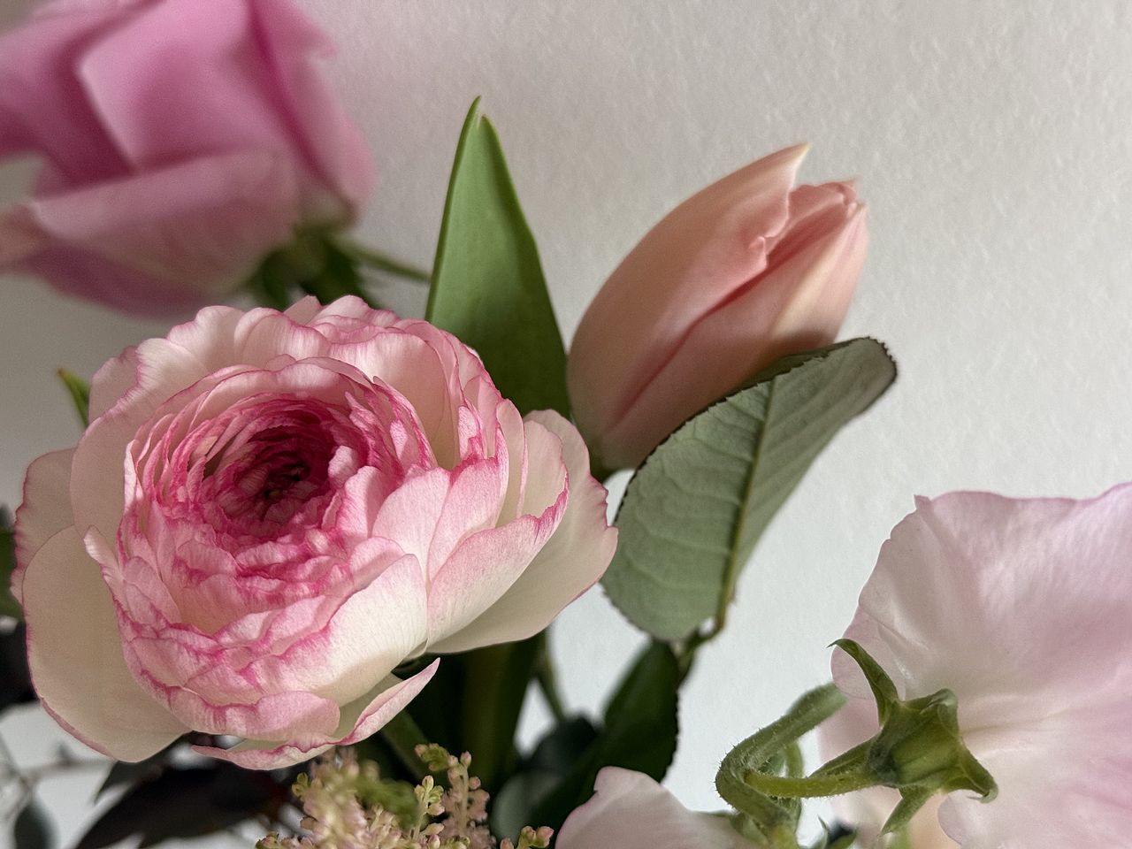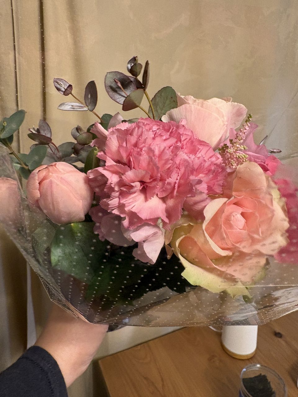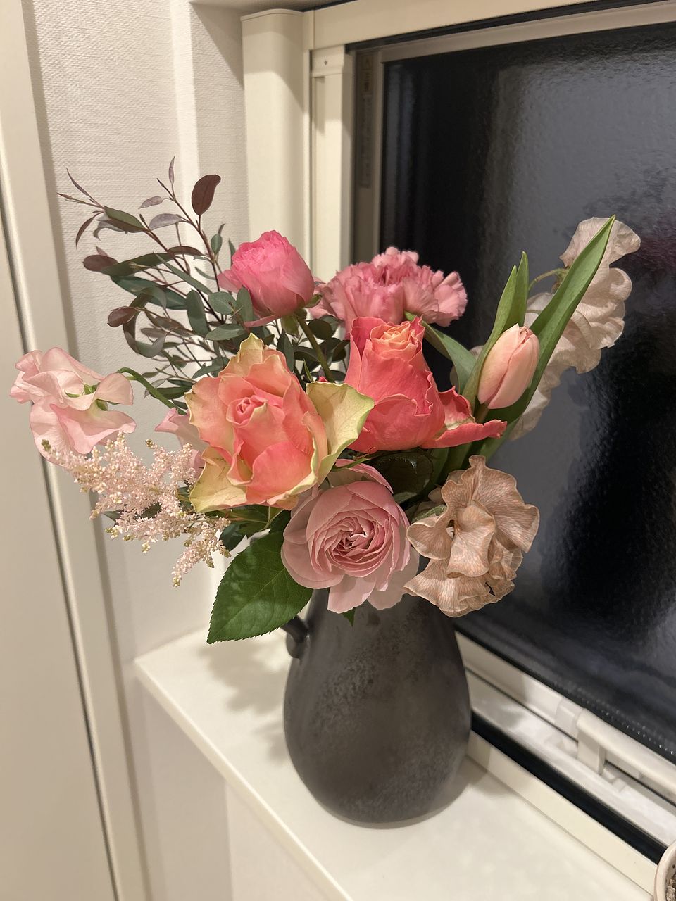 ボリュームもあって、いろんな淡いトーンのピンクのお花が入ってて、ほんとに可愛いブーケでした💐 お部屋に春が来ました🩷