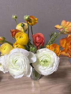 とっても元気の出るカラーで、お部屋も気分も明るくなりました✨ふわふわ可愛いラナンキュラス! いつも素敵なお花に感動です! ありがとうございます!
