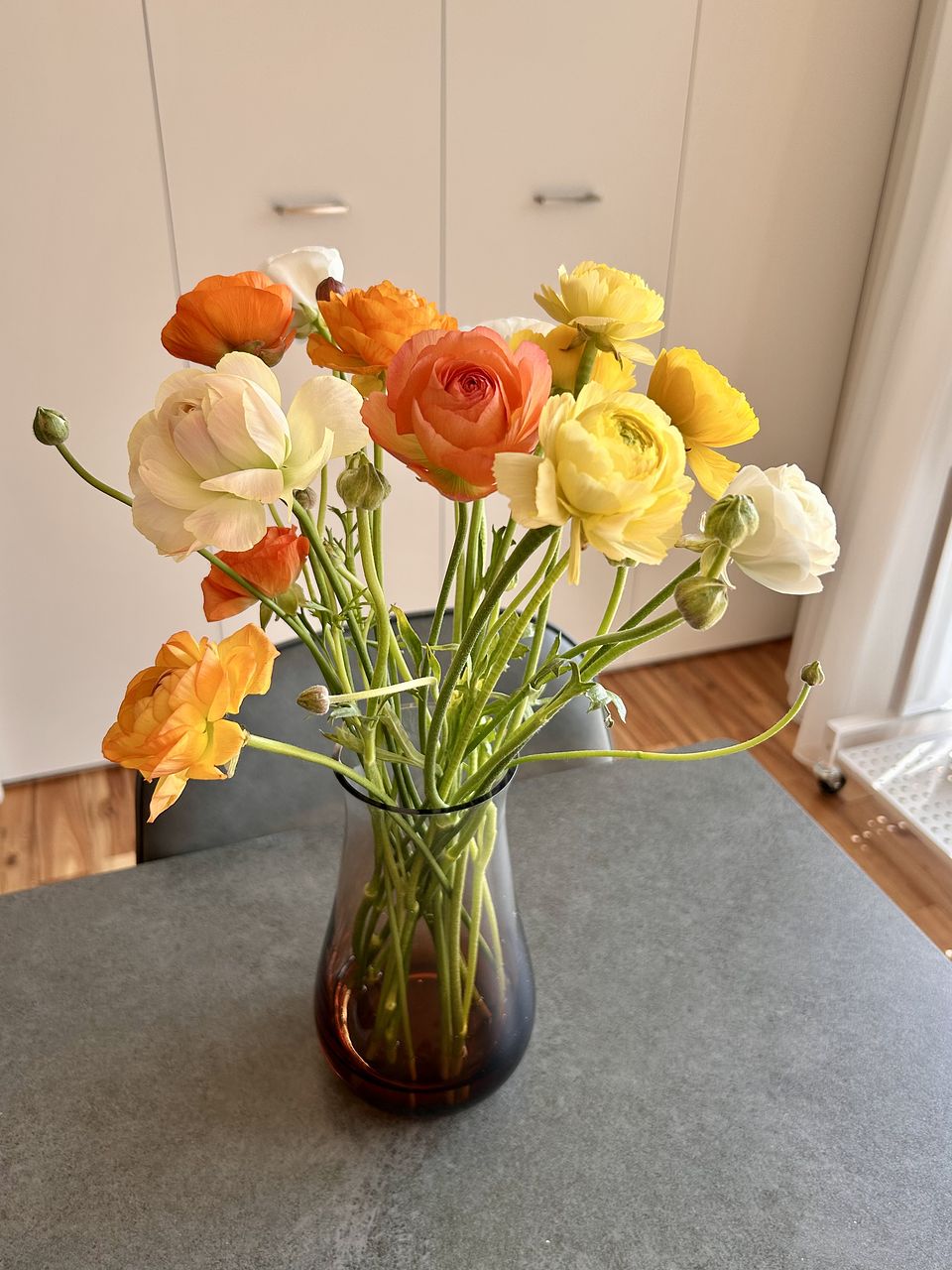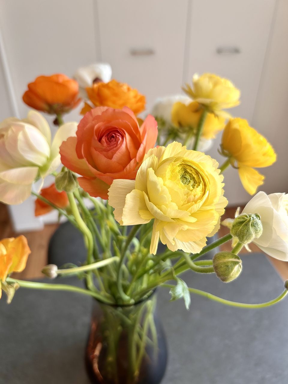 明るい色合いで部屋が華やかになりました。香りのいい品種もあって大好きなラナンキュラスを堪能できました。