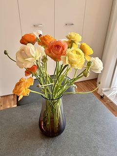 こちらのラナンキュラスと花器をセットで注文しました。 お花は一輪一輪がとても美しく、鮮度が高く、生き生きとした状態で届きました。 オレンジカラーが明るく、部屋に飾るだけで一気に元気な雰囲気になります。 日常の空間を、さりげなく格上げしてくれる素敵なお花にとても満足しています。 追記 2枚目の写真は、お花が届いてから10日目です。 届いてから毎日少しずつ、ふんわりと開花し、満開になるまで楽しめました。
