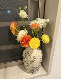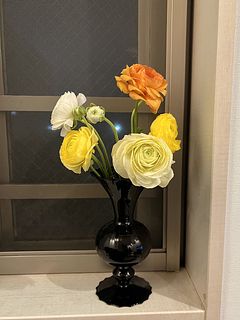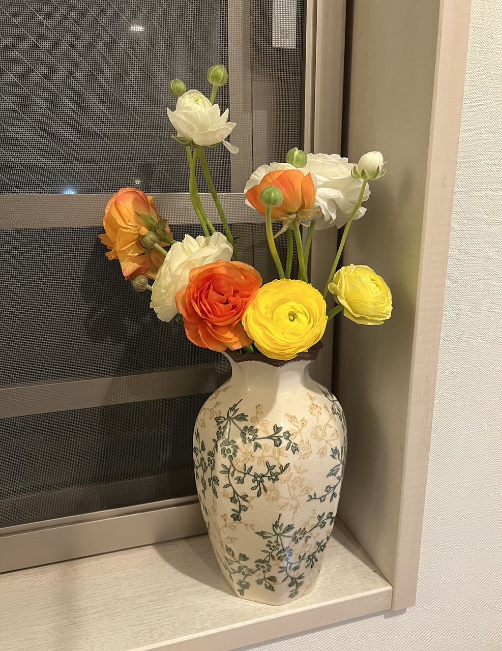 以前ラナンキュラスを購入した時には1/3ほど首が折れていたり、花びらがぐしゃぐしゃになっていたりだったのですが…今回は割といい状態だったと思います!花びらに少し癖はついていましたが優しくなおして形を少し補強中です。 オレンジの色味がとっても可愛いのでもう少し量が多いと嬉しかったな ただ少し小ぶりだったかな?