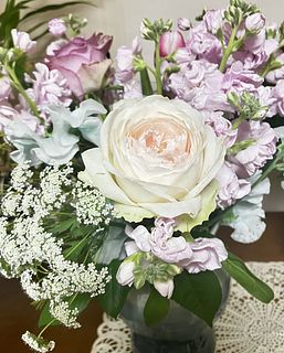 春らんまんのブーケ届いて開いたらお花の香りが部屋中に広がってとっても嬉しくて 二つのガラス瓶に飾りました ただ人工的なブルーのスイトピーの色が合わないように思います できれば黄色のフリージャーを代わりに入れて貰えば完璧に春爛漫かと… でもでも、嬉しいです💕 ありがとうございます
