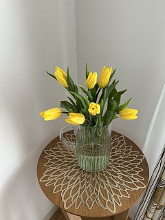 小ぶりで可愛いチューリップが届きました! 黄色のチューリップは大好きなので嬉しいです♡ きっ気に部屋が春が来たようです。