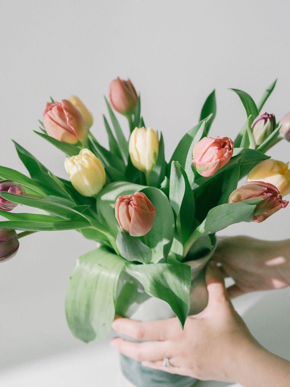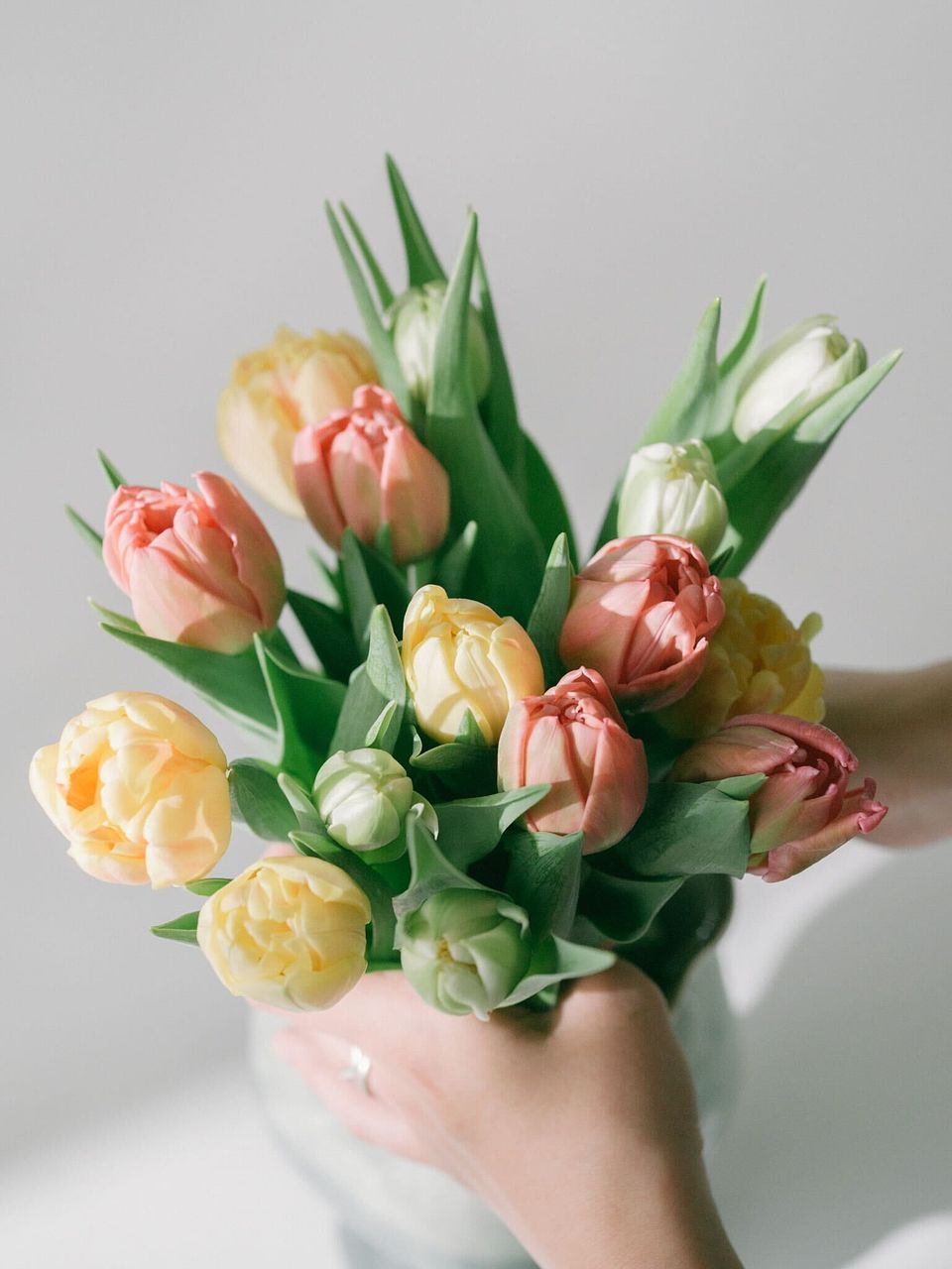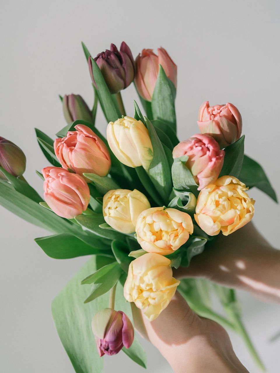 今回は3品種ミックスでお届けします。どんなチューリップが届くかは、箱を開けるまでのお楽しみ。長く楽しめるよう、硬いつぼみの状態でお届けしていることも。水揚げするとふっくら色づきますのでご安心ください。