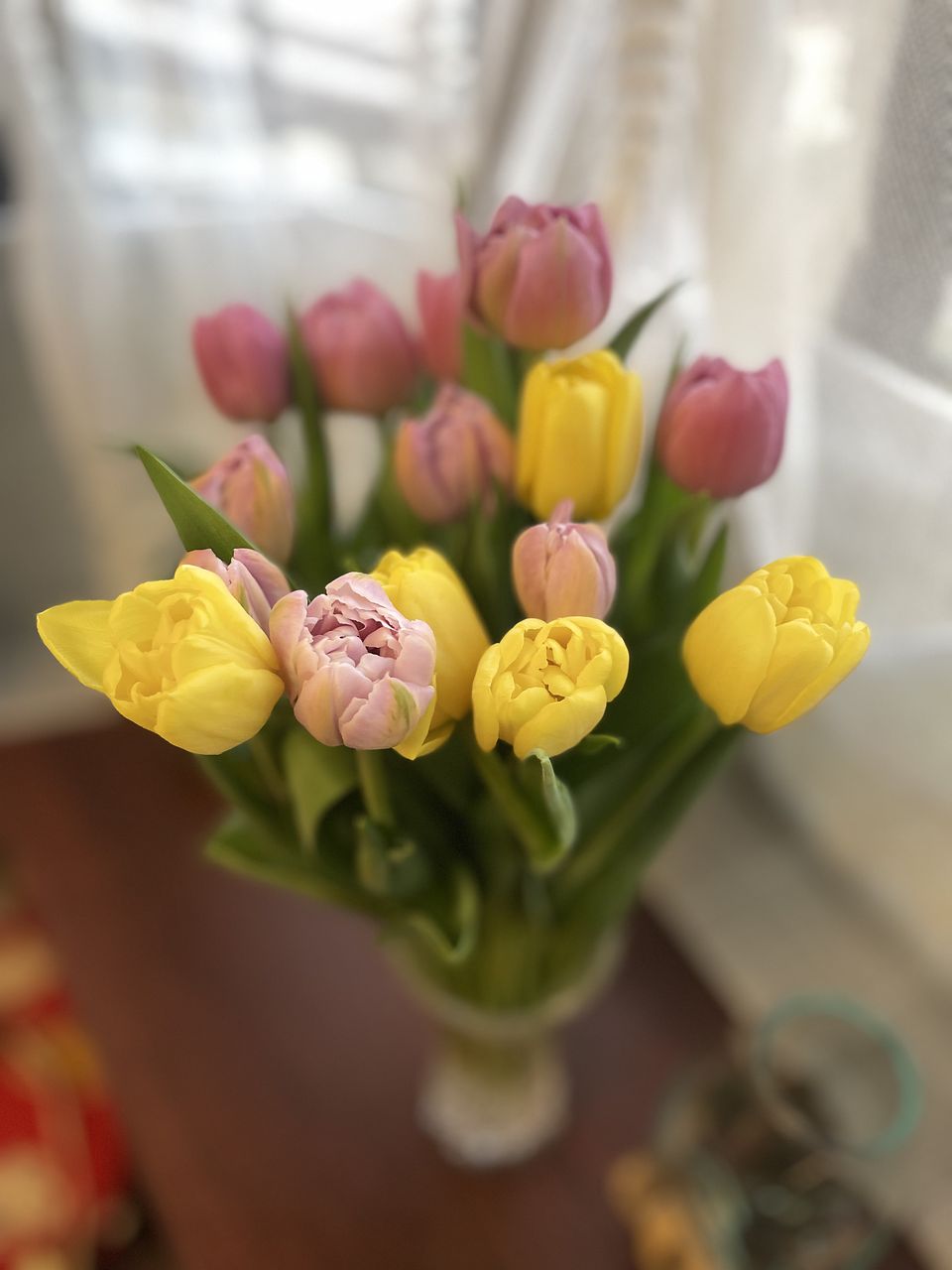 大人気のセンティアから、フリルのように華やかな八重咲き品種だけをセレクトしたおまかせブーケをお届けします。摘みたてのフレッシュチューリップをたっぷり14〜15本、生産者さんから直接お届けします。