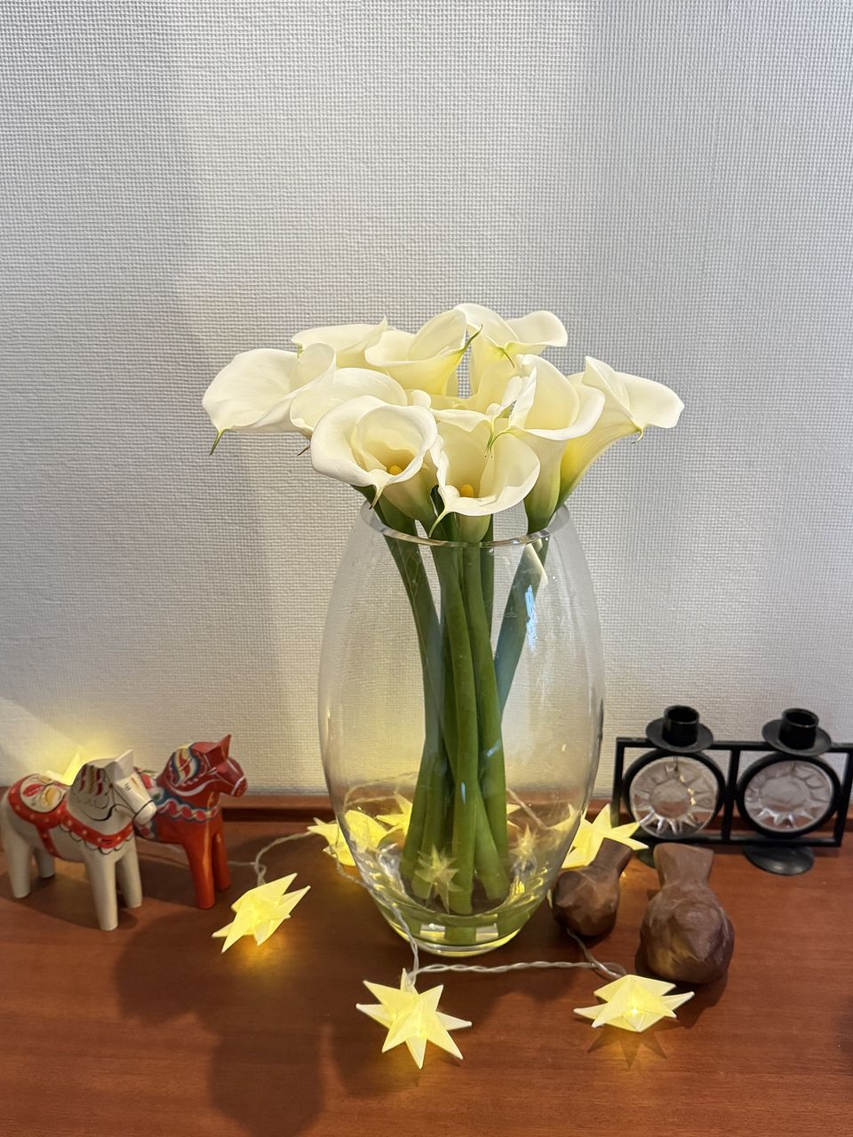 後5センチの長さがあれば インパクトあったかも。お花の大きさも大きくないので 少し低めの花瓶に入れましたが、お花がもってる優雅さで 素敵な空間になりました。