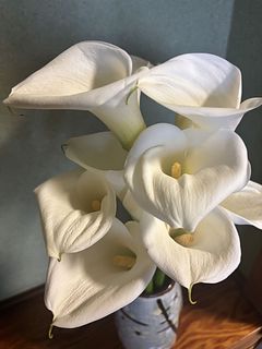 写真通りの綺麗なカラーが届きました。数日でカラーの花がふんわり開いてくると、よりボリュームがでてほんのり甘い香りがしました。 すっとのびた茎と真っ白の花が、お部屋を爽やかな空間にしてくれるのでとても気に入りました。 素敵なお花を届けていただいてありがとうございます。