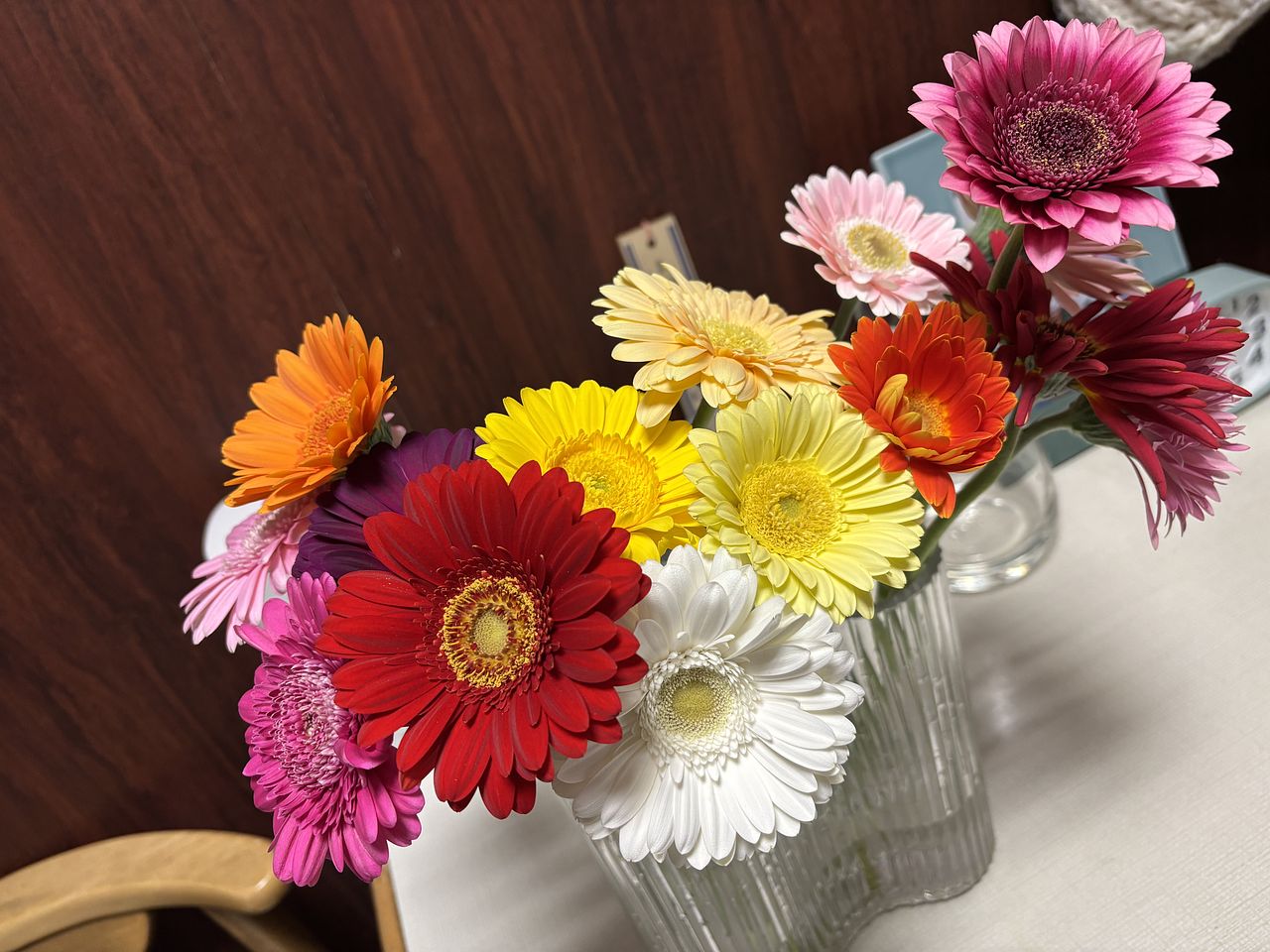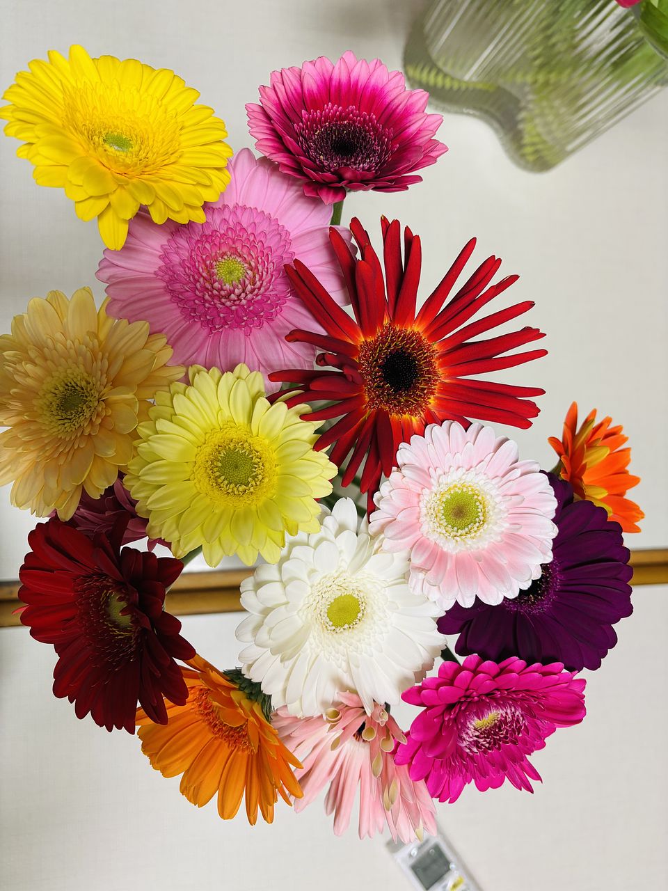 一重咲き、ポンポン咲き、スパイダー咲き、パスタ咲きなど多彩なガーベラをミックスで。15本お届けします。