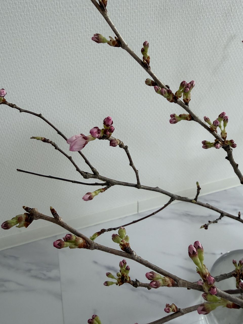最初は蕾でしたが大分咲いて来ました お家でもお花見🌸気分を味わえます❣️