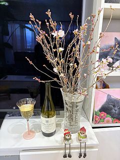 蕾だけの枝で届いて心配したけど、3日目には8分咲きに!リビングでお花見🌸できます。ほぼ白に近いから、濃いピンクのお花と一緒に飾っても素敵でしょうね。