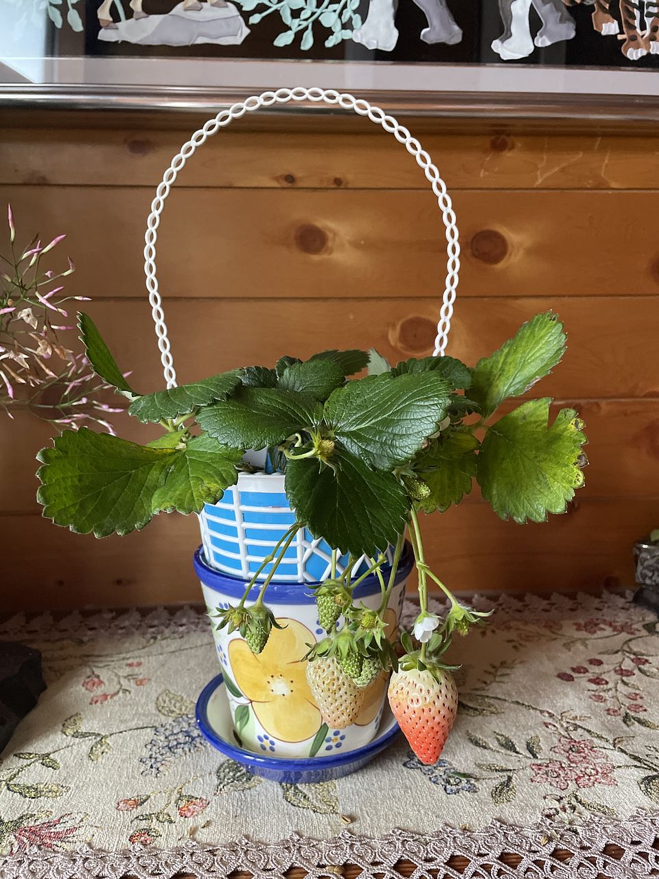 いちごの家庭菜園にトライしてみよう👩🌾かわいい実つきのいちご「章姫」1鉢お届けします🍓