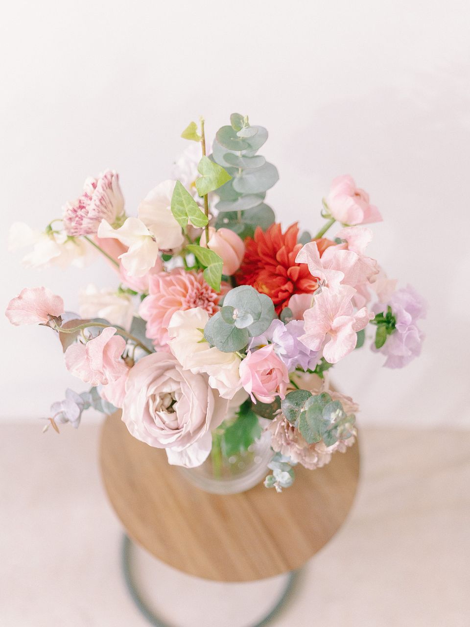 スパイラルに組まれ、葉の処理もしてあるのでそのまま飾れる楽ちんさはもちろん、ギフトにもおすすめです。内容は毎回おまかせですが、色の雰囲気は合わせてお作りする予定です!