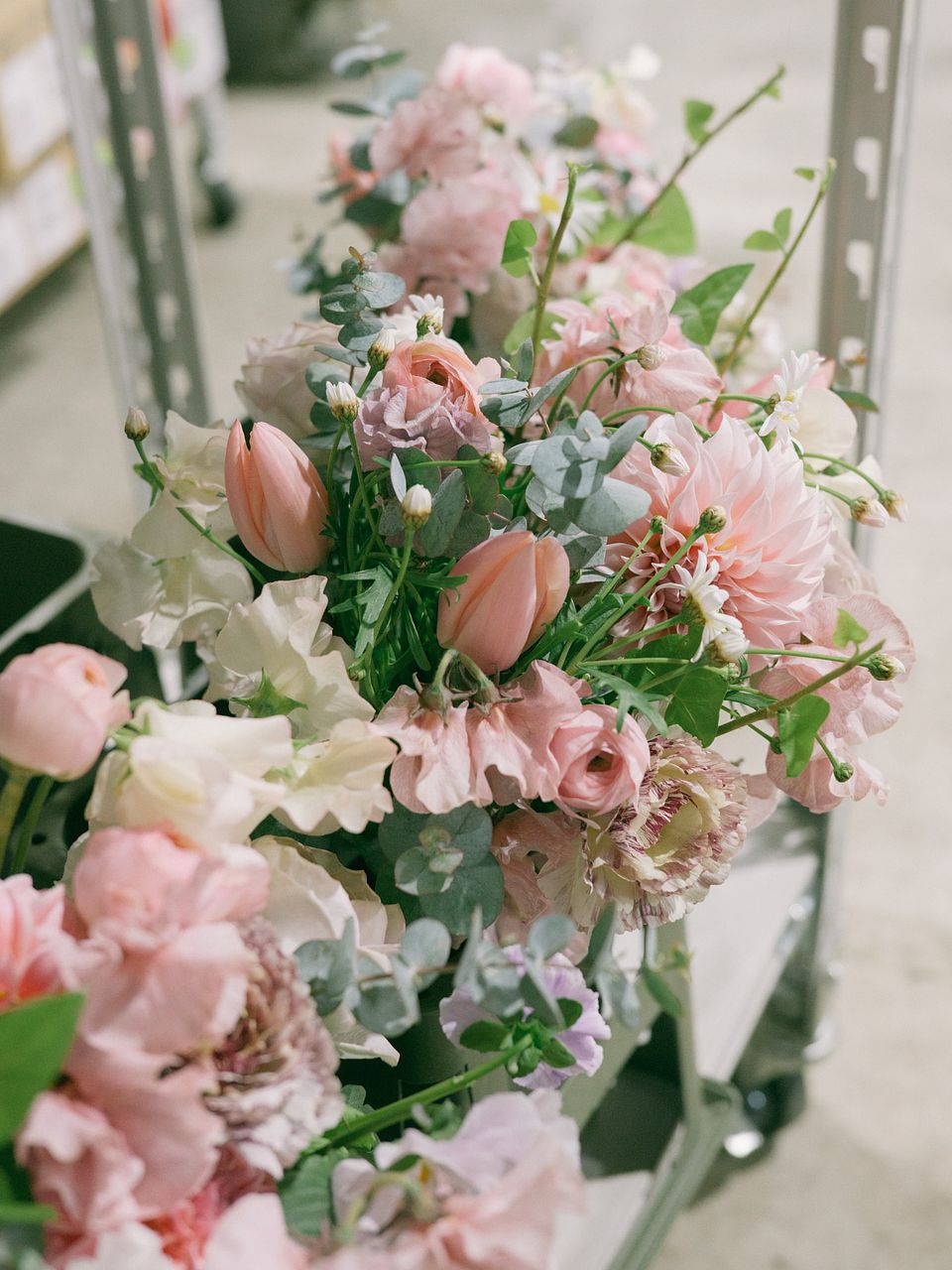 花びらの重なりや動きがきれいに見えるよう、一本一本の表情を活かしてフローリストが束ねます。