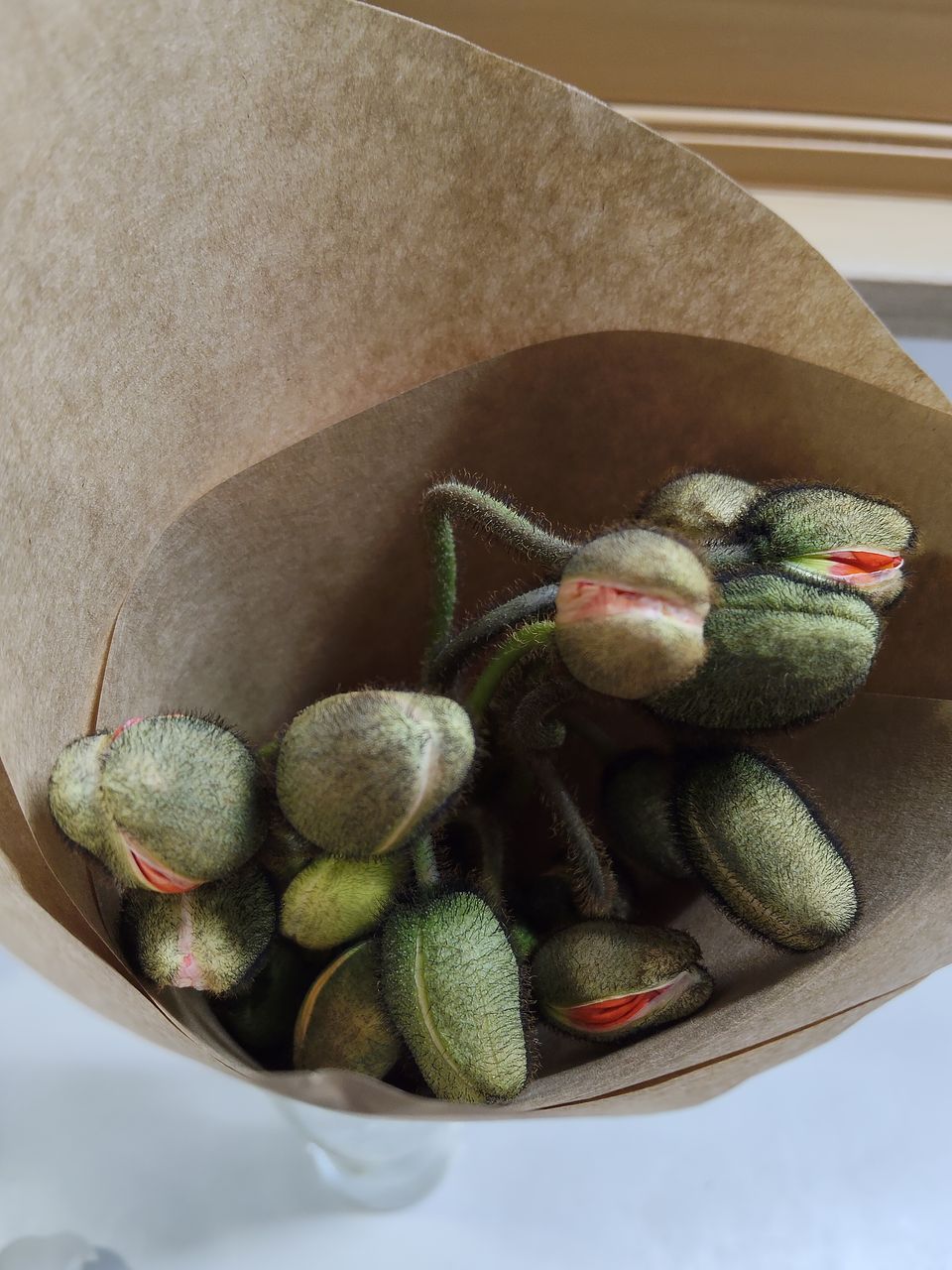 ポピー自体はとっても可愛いのですが、届いた時点で数本の茎が折れていました。合計5本ほど茎が折れていたりで蕾から咲く事はなかったです。
