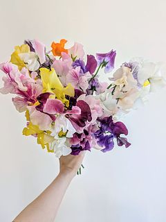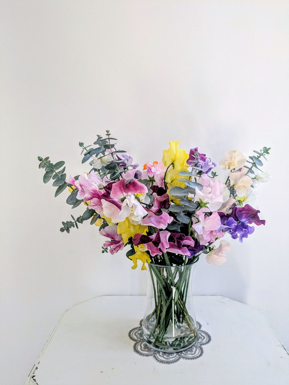 スイートピーをたっぷり20本以上!色はおまかせでカラフルにお届けします。
