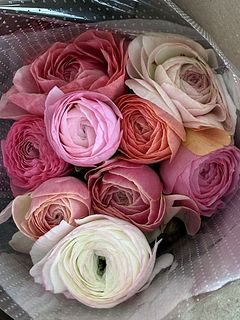 いろいろな種類の可愛いピンクのラナンキュラスでした。首が折れやすいので注意が必要です。