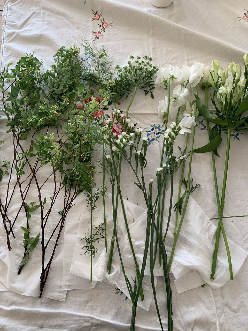 ボリュームがあるのにごちゃごちゃせず グリーンと白で優しい上品な感じでした まだ蕾のものもあったので、これからも楽しみです 素敵な花束でした
