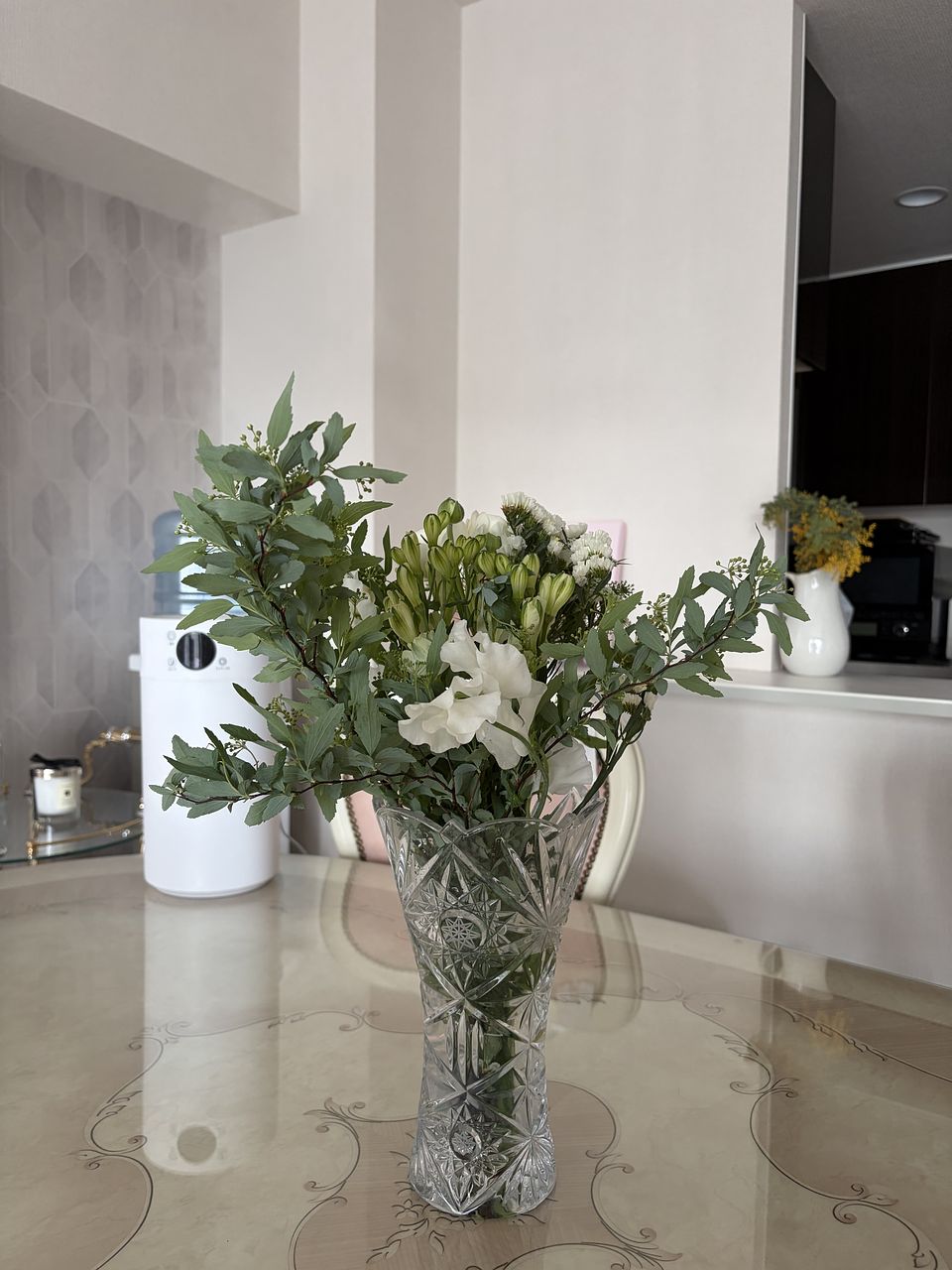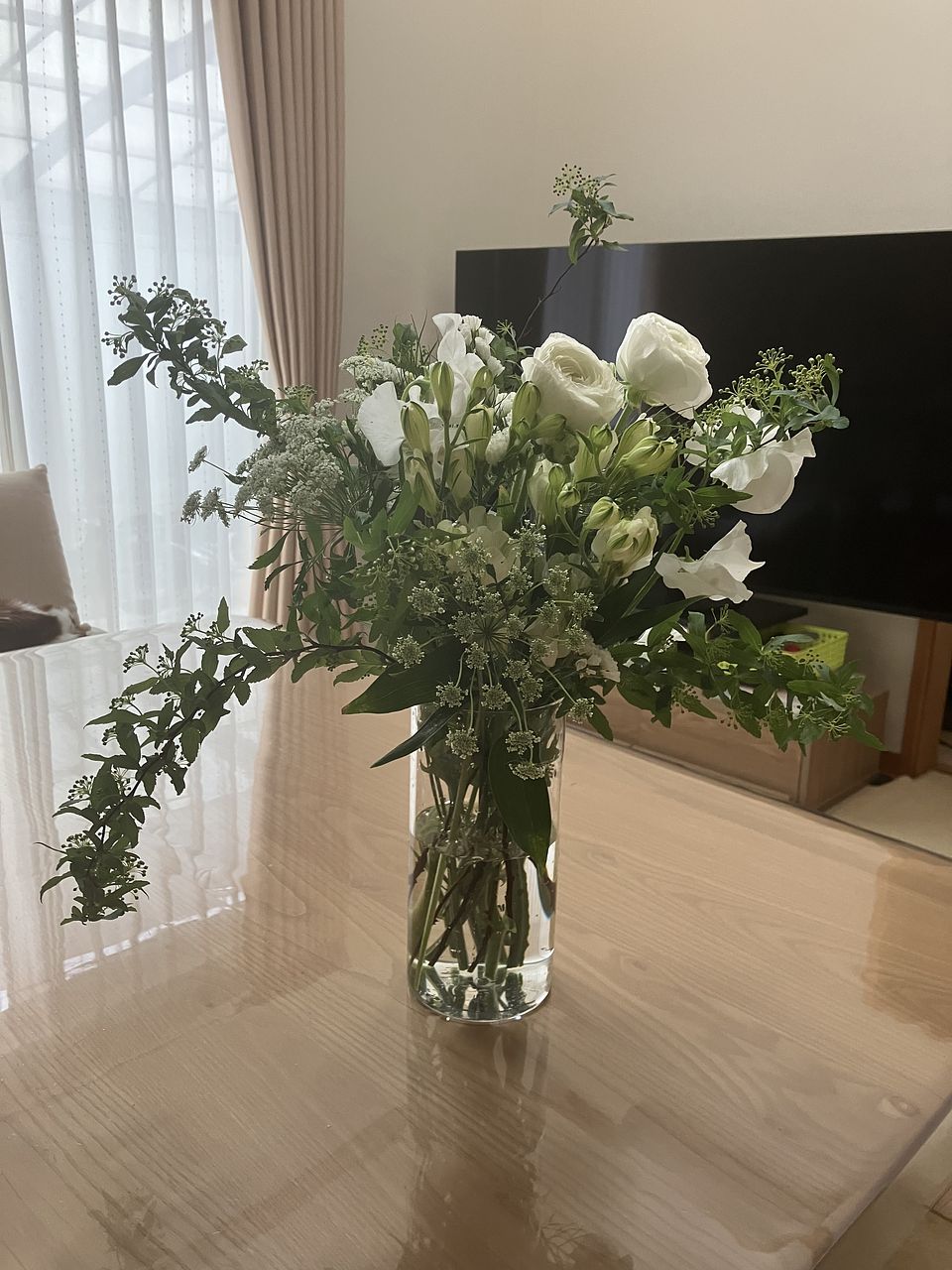 忙し過ぎて気持ちに余裕がない時に、無垢な気持ちで癒されたくてこのお花にしました。 緑と白だけのボリュームたっぷりな景色に大満足です。
