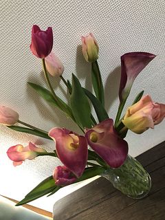 すっきりとした花姿が魅力のカラー。淡いピンクからぱきっとしたピンクをたっぷり5本お届けします🕊️