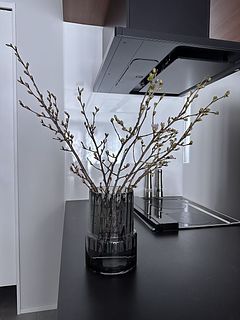 蕾いっぱいの立派な枝ぶりの桜が、届きました。 長くお花見が、楽しめそうです。 以前購入した鉄の花瓶にマッチしましたー