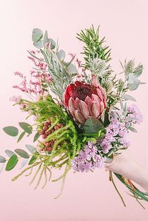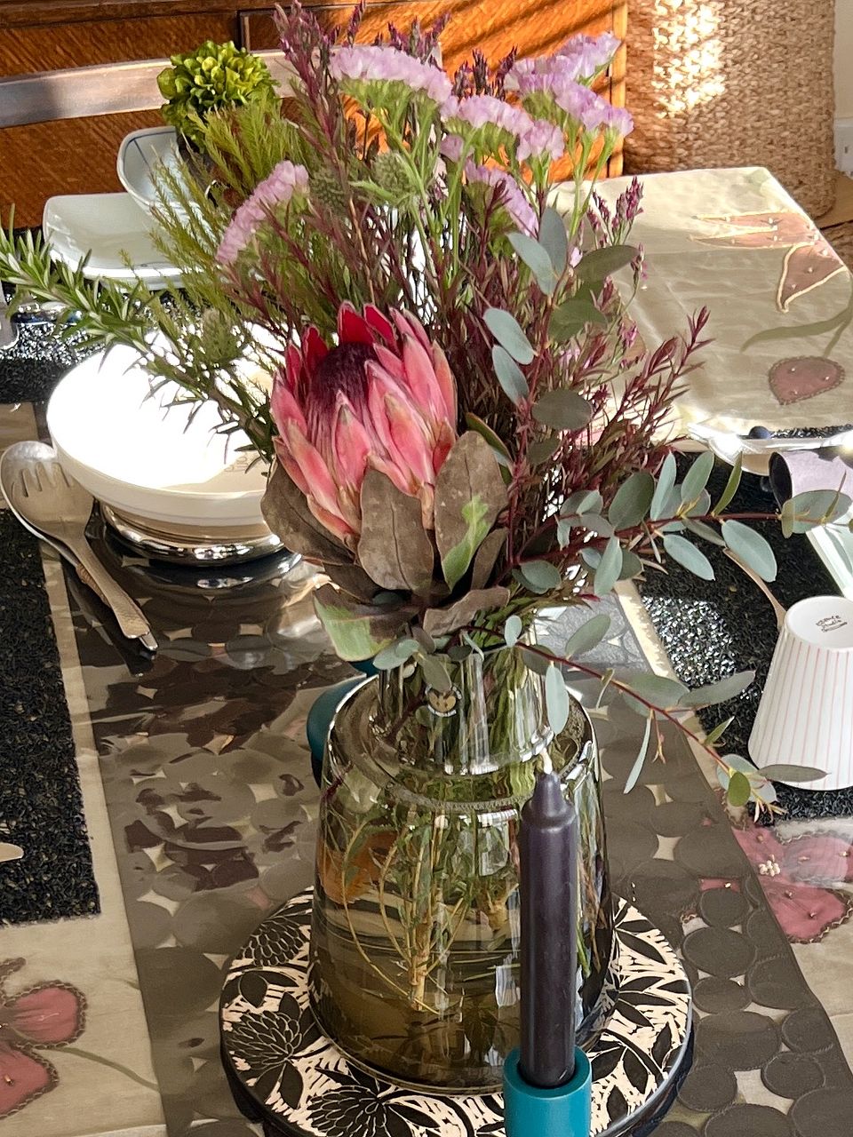 存在感たっぷりのプロテアを主役に、ローズマリーやユーカリをを束ねてみました🍓