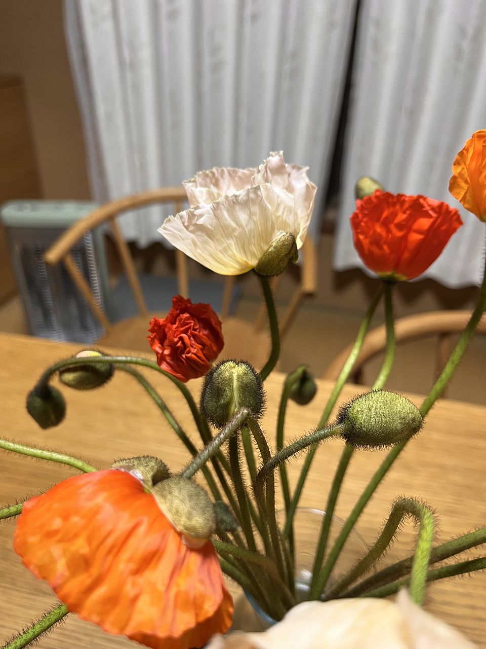 たくさんのポピーほぼ蕾で届きました。2本ほど折れてましたが小瓶に分けて飾るとこれまた可愛い 大満足です