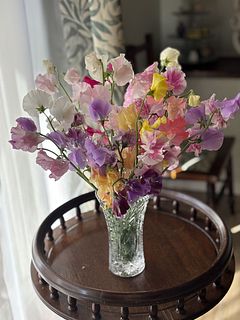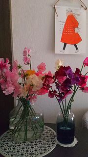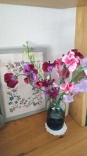 またスイートピーの香りが本当に好きなのですが、これだけの量を飾ると大変香り高くなってとっても癒されます。