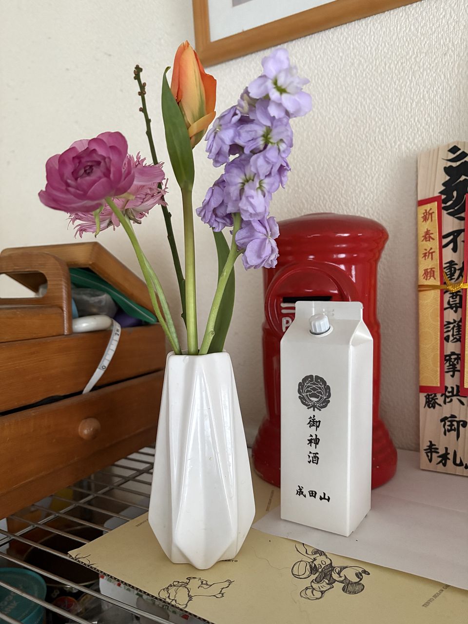 大きめの花器にどっさり活けて(使用花器:ファゴット)。