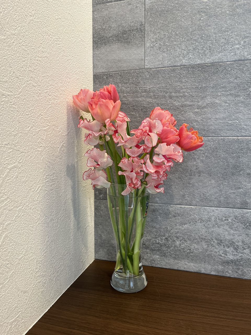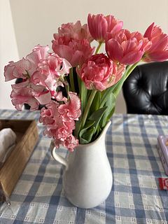 ただのピンクや赤じゃない何とも言えない可愛らしいお色のチューリップとスイートピーでした。 またこのチューリップ2種とスイートピーの色合いの相性が良い❣️ しかもスイートピーだけでなくチューリップからも甘い香りがします✨ 個人的に好きなブーケランキング上位に入る可愛さ😍 まだ外は寒いですが名前通りハッピーで暖かい春の訪れを感じました。 再販してほしい〜💖 スイートピーは恋かすみでしょうか? 恋かすみだけのブーケもぜひお願いします💖