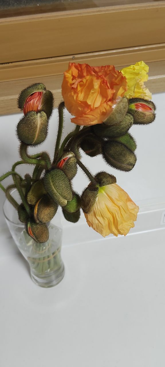 ポピーは俯きがち。紙に巻いて水揚げを行ってみて。