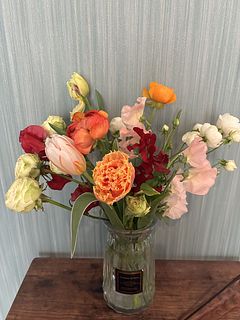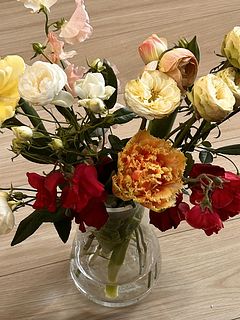 チューリップとラナンキュラスが折れていました。 仕方ないなぁとは思いますが、残念。 先ほど画像も送り重複しますが、再度送ります。 赤と白が基調だったので、いつもより強い印象でした。どちらかというと苦手。 それもお任せの楽しみだと理解し、お世話します。 いつもありがとうございます。