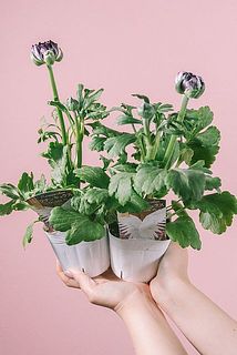 シックな変わり咲きのラナンキュラス「イカロスパープル」の鉢を2鉢お届け!