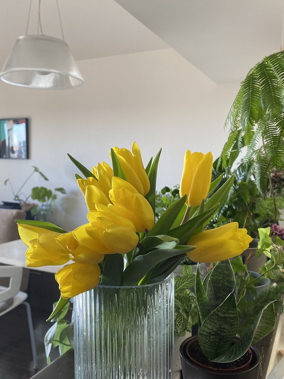 口が広がった花器なら、チューリップの伸びやかな茎を活かしてふわっと飾れます。
