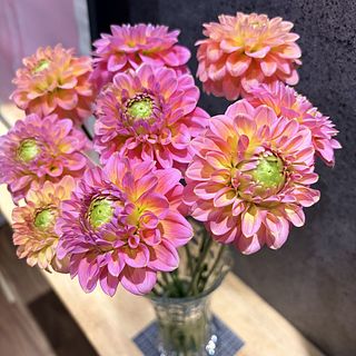 今回は小輪のダリア「ホットピンクオセロ」をたっぷり10本お届け。花径5cmほどの小輪のかわいらしいダリアです。春らしい柔らかいピンク色〜黄色のグラデーションが特徴の希少なダリア。ぜひお試しを🦩