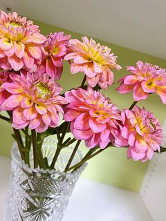 今回は小輪のダリア「ホットピンクオセロ」をたっぷり10本お届け。花径5cmほどの小輪のかわいらしいダリアです。春らしい柔らかいピンク色〜黄色のグラデーションが特徴の希少なダリア。ぜひお試しを🦩