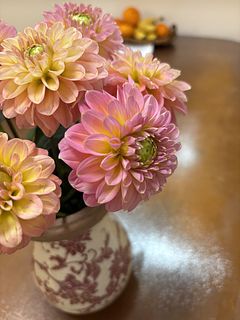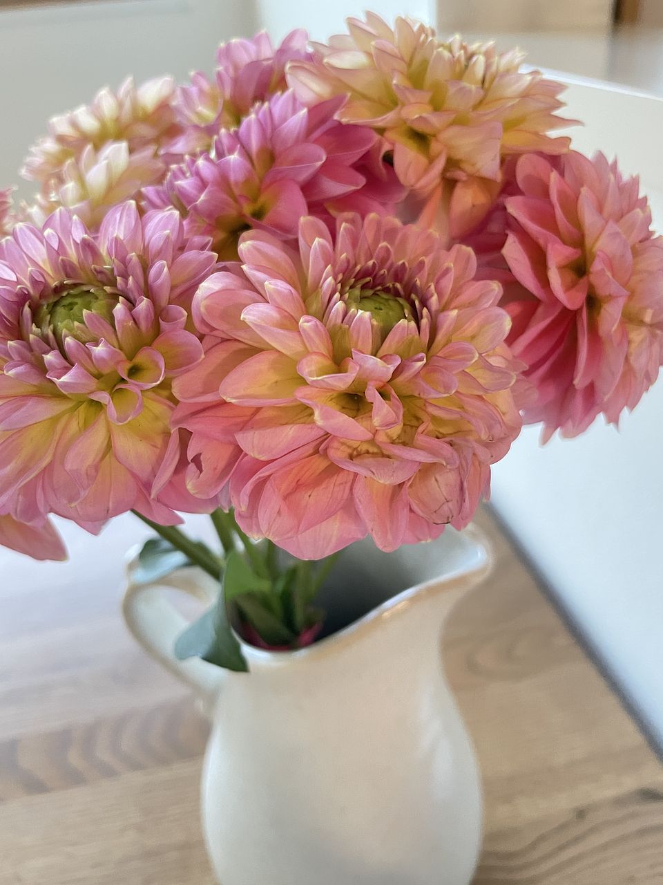 文字通りの桃色が可愛いダリアでした❣️ 濃いめと薄めとミックスされていて😍 ただ、茎がとても細いので扱うのが少し大変🤏 本数がもっとあったらいいのに、と思いました