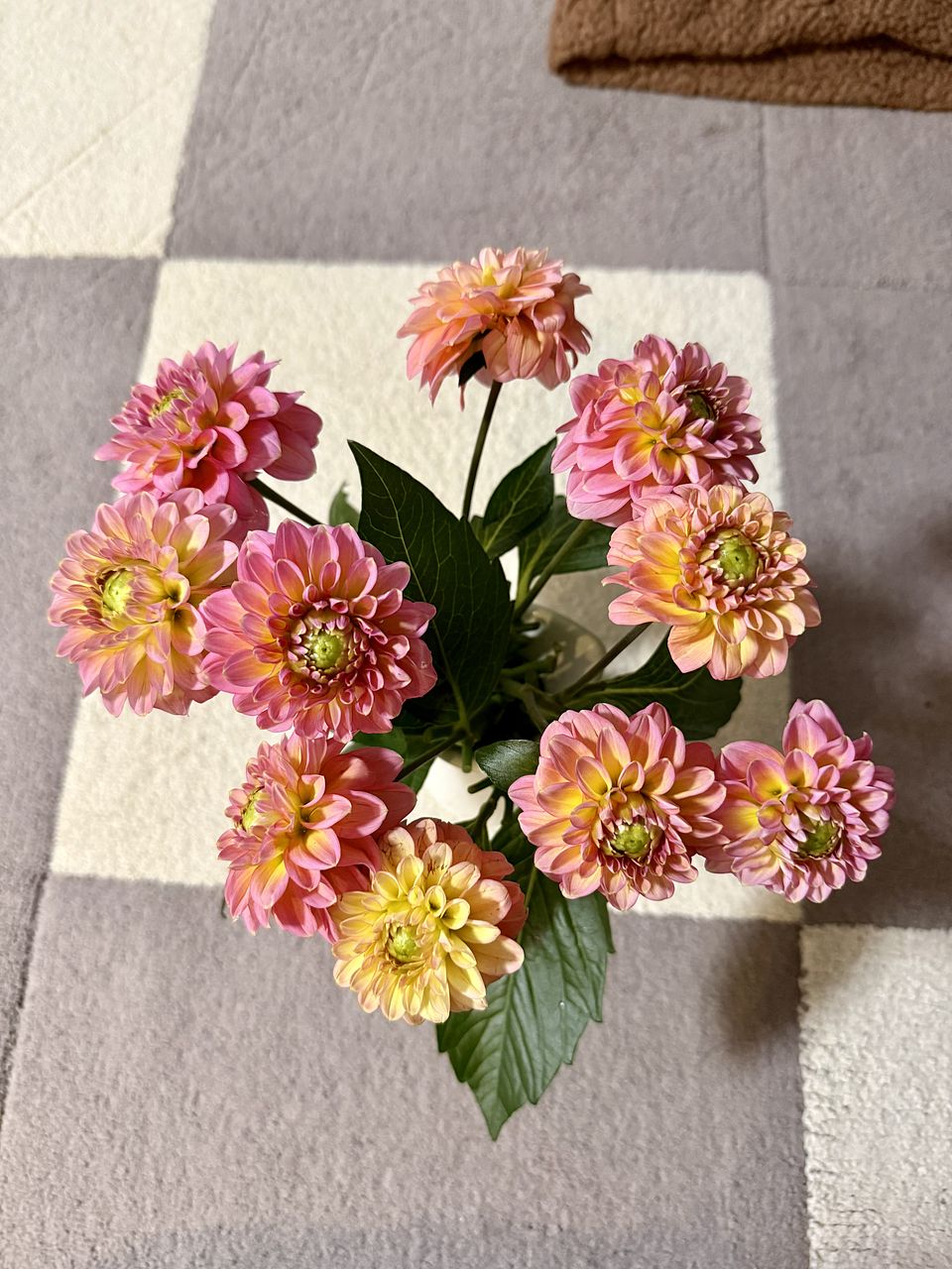 可愛い春の色のダリアが届きました🎁 ミニダリアですが、小ぶりな咲き方がとても可愛い🥰 たっぷり10本もあるので見応えもあります😊 お花も茎もしっかりしてて、とてもいい状態で届きました。 ありがとうございました😊