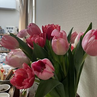 すごく新鮮なチューリップが届きました。暖房のついた部屋に飾ったおかげか、届いた翌日から順々に咲き始めました。とてもかわいくて、春を感じています。