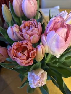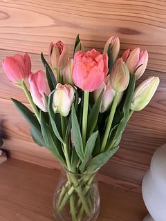 こぶりなサーモンピンクと薄ピンクのチューリップでした。色合いが春らしくとても綺麗です。水揚げも上手くいき綺麗に開きました。また購入したいです。