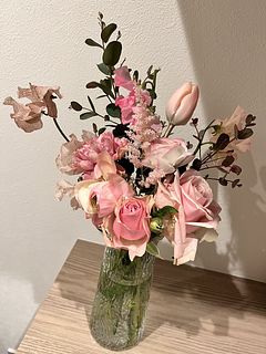 ボリュームもあって、いろんな淡いトーンのピンクのお花が入ってて、ほんとに可愛いブーケでした💐 お部屋に春が来ました🩷