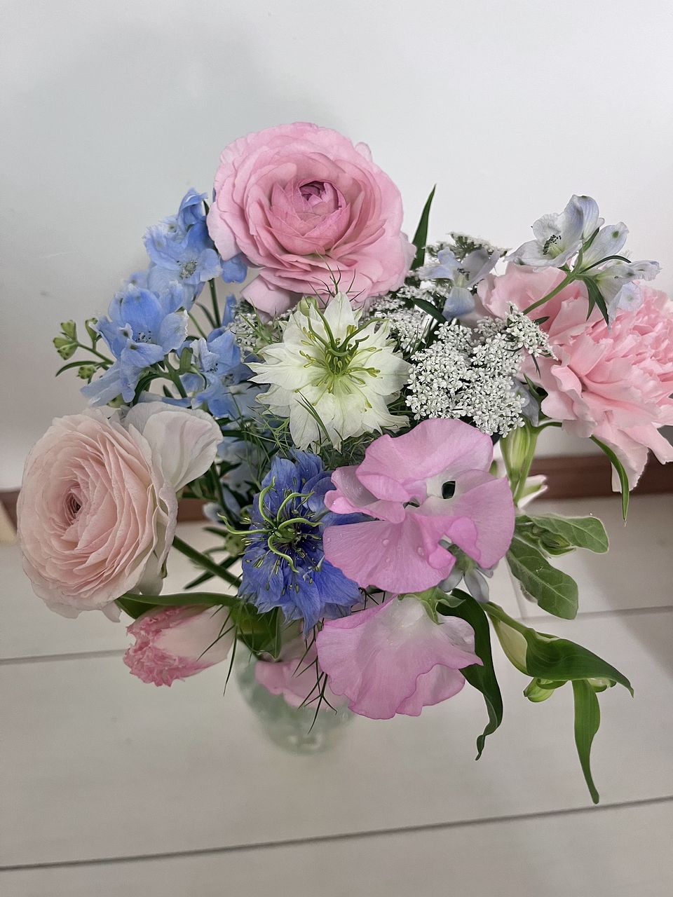 3月の誕生花「ラナンキュラス」や「スイートピー」、「ニゲラ」などを組み合わせたおまかせブーケ。その月の誕生花を飾っておくと、なんだか幸運が訪れそうな予感🕊️カラフルな春のお花をチョイスしてお届けします💐