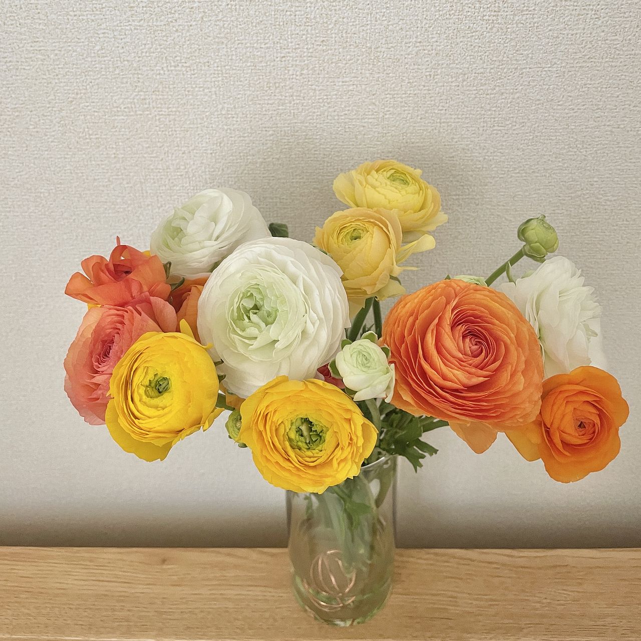 たっぷりのラナンキュラスが届きました つぼまみが多く、またお花の大きさも違うので咲くのが楽しみでーす 春カラーで、お部屋の雰囲気が明るくなりました 次は、花もちも違ういぃので、長く楽しめます❤️