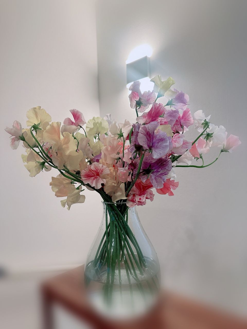 スイートピーをたっぷり20本以上!色はおまかせでカラフルにお届けします。