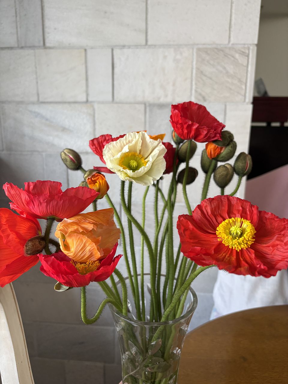 大好きなポピー❤️何回か購入してますが今回はオレンジと白が一本ずつであとは赤でした💦赤も綺麗で可愛いけどこんなにかたよる事もあるんだなぁと…少しだけ残念でした💦