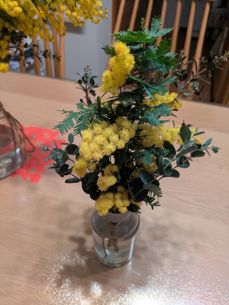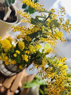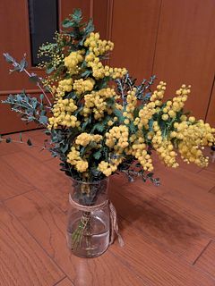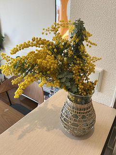ふわふわに咲いたミモザがたっぷり入っていて、ボリュームも想像以上。鮮やかな黄色がとても綺麗。 ふたつの花器に生花を活け、残りをドライフラワーにしました。家のあちこちに春が来た感じ。 大満足です。