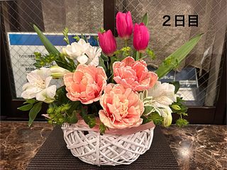 一緒に購入した「絵画のように花を楽しむ」花器に生けました。この花器もすごく良かったです♡