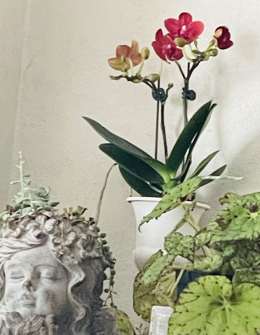 思ったより色の濃いお花でした。2本立てですが、先の方が更に分かれていて、蕾もたくさん付いています。長くお花を楽しめそうです。葉っぱも生き生きしています。花後も大事に育てていきたいと思います。