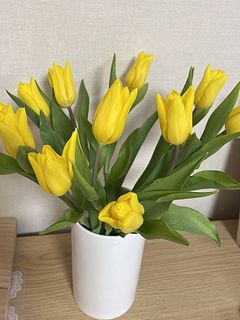 口が広がった花器なら、チューリップの伸びやかな茎を活かしてふわっと飾れます。