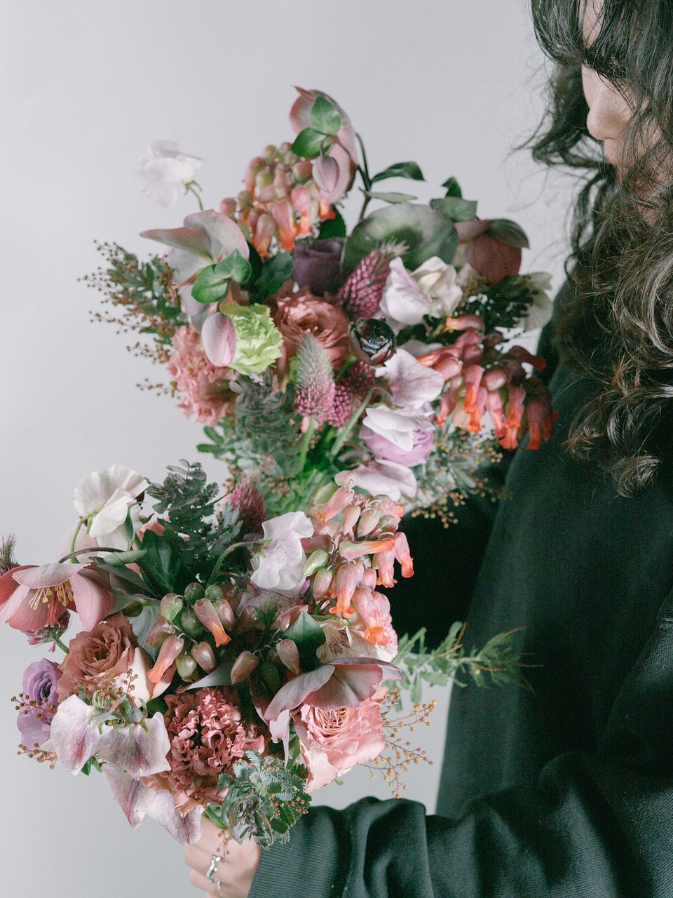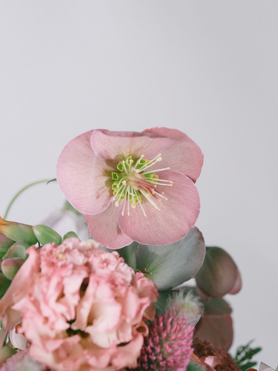 今回はやわらかな紫が美しい、季節のクリスマスローズをメインに束ねました。