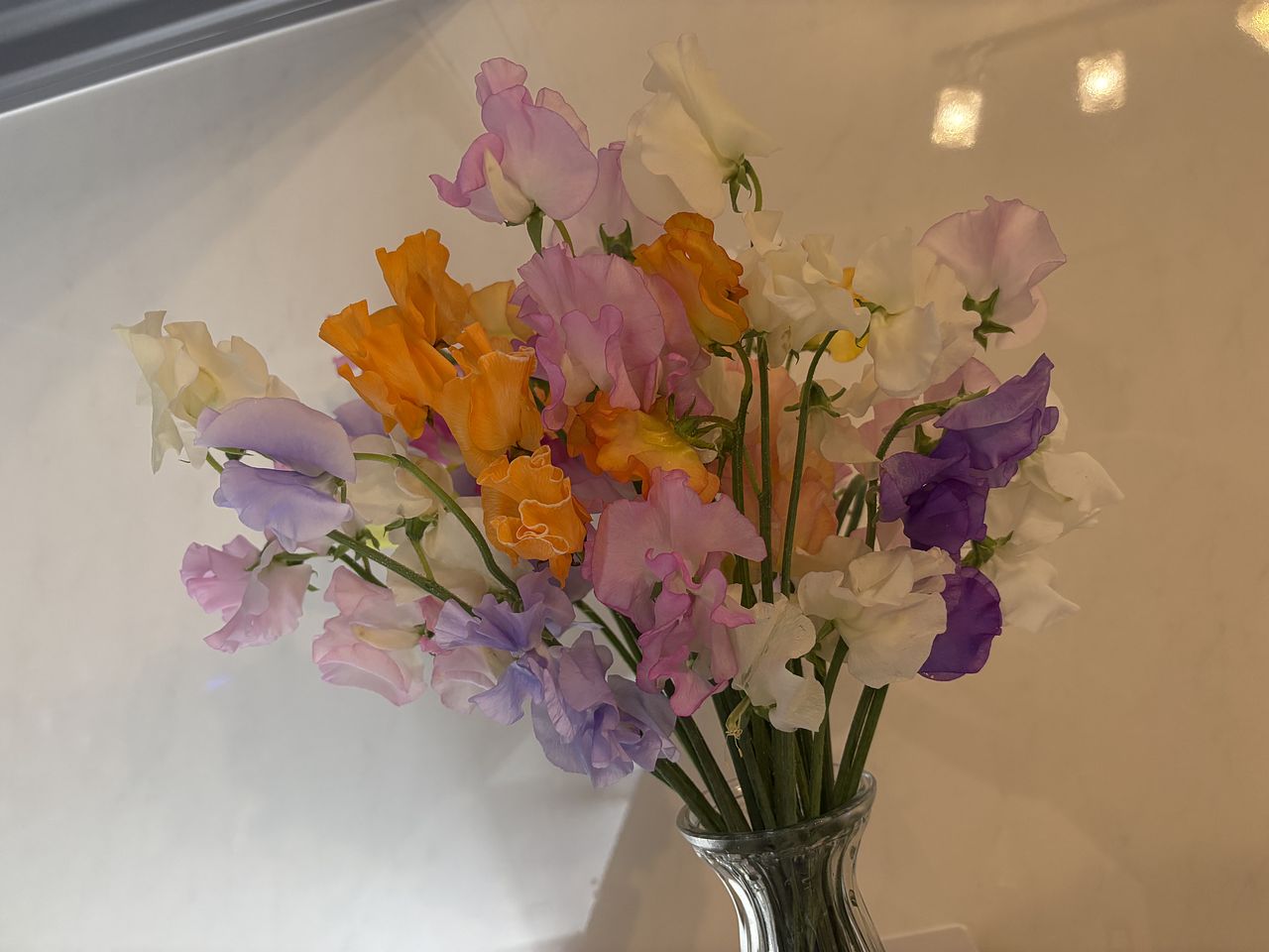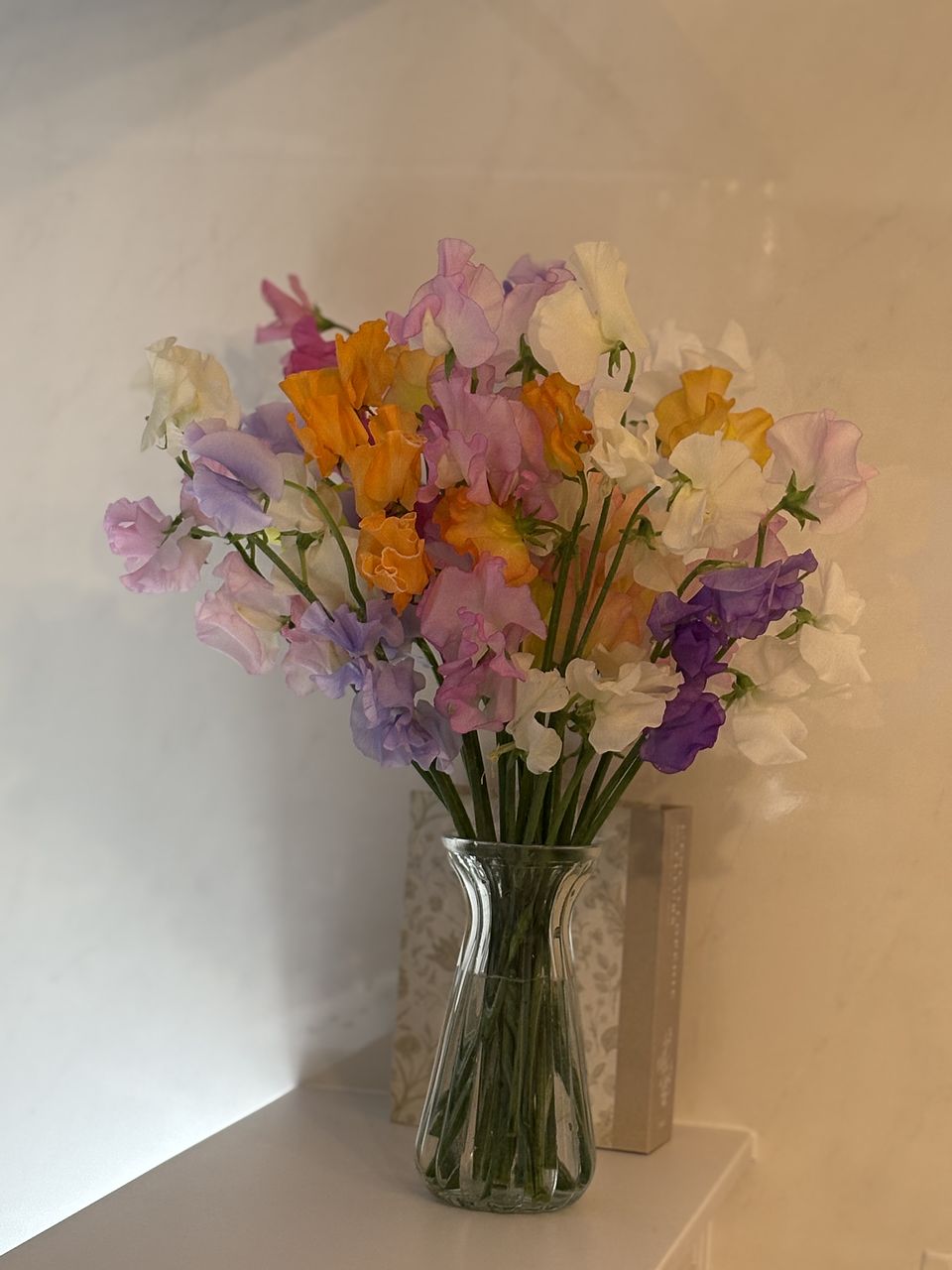 スイートピーをたっぷり20本以上!色はおまかせでカラフルにお届けします。